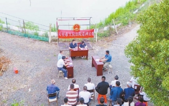 近日,安徽省天長市人民法院秦欄人民法庭法官來到東風(fēng)村螃蟹養(yǎng)殖基地,公開開庭審理一起農(nóng)業(yè)承包合同糾紛案。法官經(jīng)過現(xiàn)場勘查、細心調(diào)解,當(dāng)場化解糾紛,養(yǎng)殖戶投放的500斤蟹苗有了著落,村委會減少了經(jīng)濟損失。