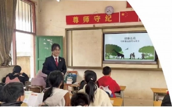藤縣法院法官向?qū)W生講解環(huán)保法律知識。