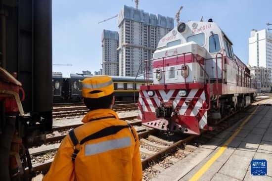 近期,上海持續(xù)高溫天氣。在中國鐵路上海局集團(tuán)有限公司上海站運(yùn)轉(zhuǎn)車間,調(diào)車員冒著高溫堅(jiān)守崗位,確保暑運(yùn)列車運(yùn)行安全。