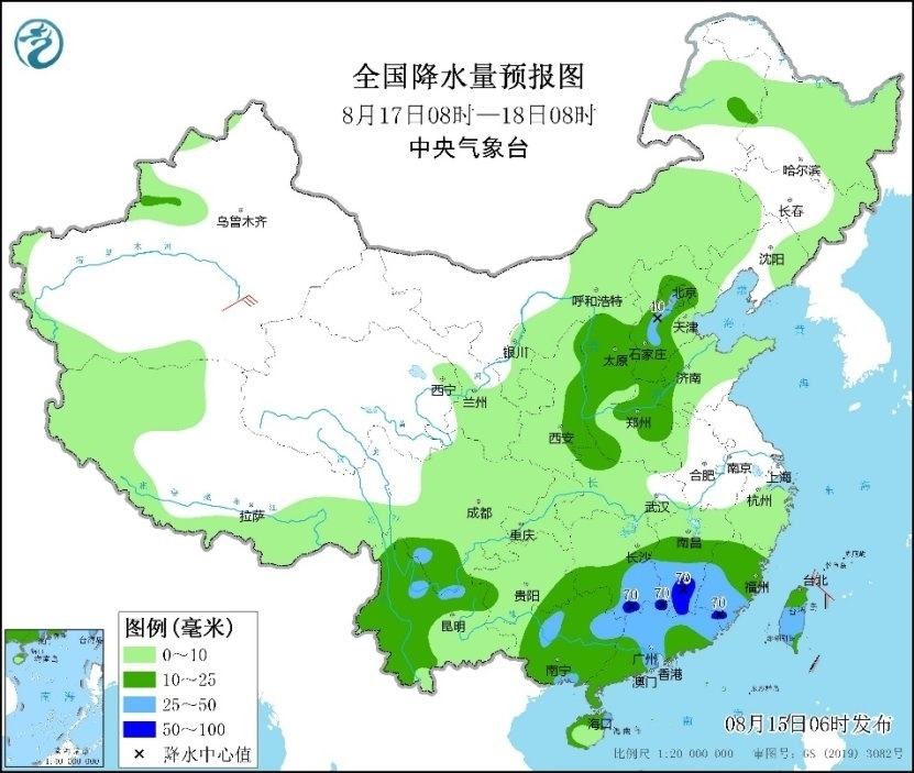 未來三天,江南南部、華南及四川盆地等地部分地區(qū)有分散性強降雨,并伴有強對流天氣,降雨強度大;西北地區(qū)東部、內蒙古、華北、東北地區(qū)、黃淮等地有一次降雨過程,青海、甘肅、寧夏、陜西等地部分地區(qū)已出現(xiàn)較強降雨,需防范持續(xù)降雨和局地短時強降雨可能引發(fā)的次生災害。由于副熱帶高壓減弱和降雨鋪展,高溫明顯減弱。高溫主要集中在四川盆地,湖北、湖南、浙江、江蘇等地雖有高溫,但范圍較小。