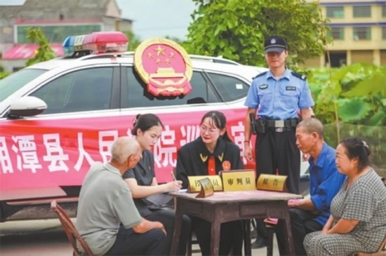 花石法庭與當地司法所、派出所、律師事務所聯(lián)合村委會就該案開展了分析研判,多次組織雙方當事人協(xié)商,一直未達成協(xié)議。為避免糾紛久拖不決,同時考慮到雙方是幾十年的鄰居,法官決定將庭審“搬”至當事人家門口。