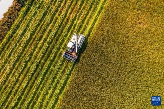 近日,浙江省湖州市吳興區(qū)東林鎮(zhèn)萬畝稻田迎來豐收季,當(dāng)?shù)胤N糧戶搶抓農(nóng)時(shí),趁著天氣晴好搶收水稻,確保顆粒歸倉。目前,東林鎮(zhèn)全鎮(zhèn)水稻種植面積20000余畝。