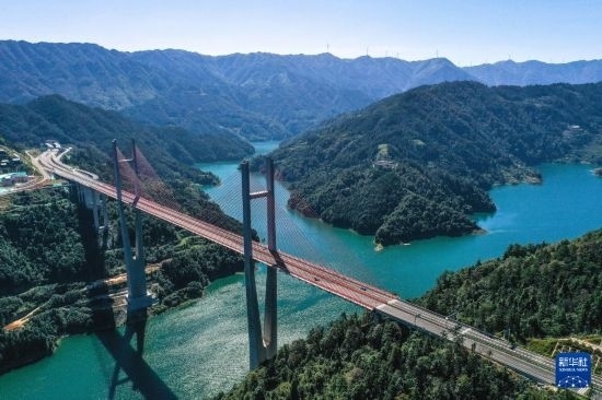 10月25日,車輛在貴州劍黎高速南孟溪大橋上行駛(無(wú)人機(jī)照片)。