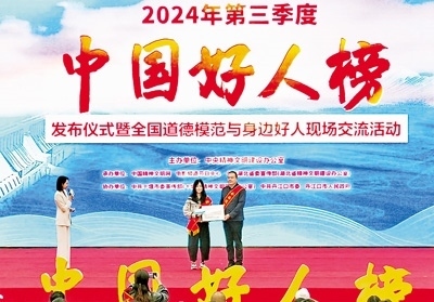 30多年堅守海上救援的“漁家子弟”董建海,數(shù)九寒天跳入冰窟救人獻出生命的普通村民高元嶺,自愿守護烈士英靈43載的退伍老兵顧平,犧牲在防汛一線的90后基層干部李東,21年不離不棄照料患病親人的好兒媳王秀杰……11月12日,由中央精神文明建設辦公室主辦的2024年第三季度“中國好人榜”發(fā)布儀式暨全國道德模范與身邊好人現(xiàn)場交流活動在湖北省十堰市舉辦,經(jīng)各地推薦、網(wǎng)友評議和專家評審等環(huán)節(jié),共有152人(組)助人為樂、見義勇為、誠實守信、敬業(yè)奉獻、孝老愛親身邊好人光榮上榜。