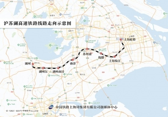 滬蘇湖高鐵是上海、蘇州、湖州基礎(chǔ)設(shè)施互聯(lián)互通的重大項(xiàng)目,也是長(zhǎng)三角高鐵聯(lián)網(wǎng)、補(bǔ)網(wǎng)、強(qiáng)鏈的重點(diǎn)項(xiàng)目。滬蘇湖高鐵由上海虹橋站引出,途經(jīng)蘇州市,終至湖州市湖州站,線路全長(zhǎng)約163公里,設(shè)計(jì)時(shí)速350公里,設(shè)上海虹橋、上海松江、練塘、蘇州南、盛澤、湖州南潯、湖州東、湖州站等8座車(chē)站。