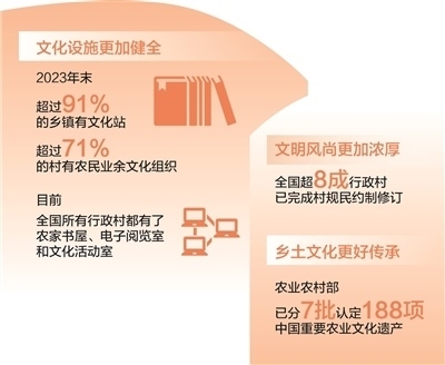 新時代以來,各地區(qū)各部門深入推進農村精神文明建設。加快完善鄉(xiāng)村文化設施,健全農村公共文化體系,農家書屋、鄉(xiāng)村文化禮堂等打通文化惠民“最后一公里”;發(fā)展群眾性文體活動,廣泛開展“村BA”“村超”“村晚”等,豐富鄉(xiāng)村精神文化生活,展現(xiàn)鄉(xiāng)親們積極向上的精氣神;培育挖掘鄉(xiāng)土文化人才,引導文化工作者、科普工作者、文化志愿者等投身鄉(xiāng)村文化建設;賡續(xù)鄉(xiāng)村優(yōu)秀傳統(tǒng)文化,把對非遺的保護傳承和開發(fā)利用有機結合,將藝術與古村落、古民居的活化利用有機結合;持續(xù)推進農村移風易俗,革除高價彩禮、人情攀比、厚葬薄養(yǎng)、鋪張浪費等陳規(guī)陋習,反對迷信活動,推動形成文明鄉(xiāng)風、良好家風、淳樸民風;健全鄉(xiāng)村治理體系,有效發(fā)揮村規(guī)民約作用,推廣文明積分等方式,激勵農民自覺踐行文明新風……這些舉措為加強農村精神文明建設提供了有力抓手,推動現(xiàn)代文明理念融入鄉(xiāng)村生活方方面面,為推進鄉(xiāng)村全面振興注入新動能。