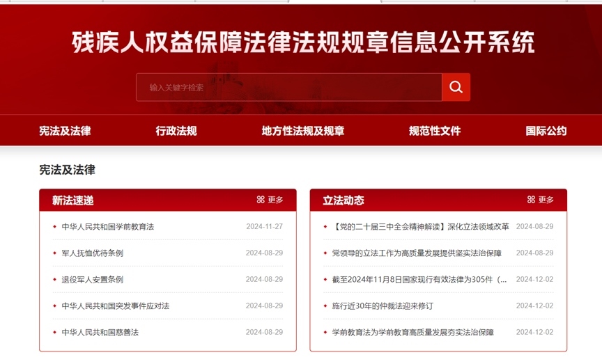 殘疾人權(quán)益保障法律法規(guī)規(guī)章信息公開系統(tǒng)界面截圖