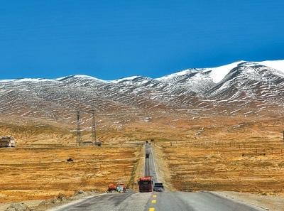 車輛行駛在青藏公路青??煽晌骼锫范巍?/p>