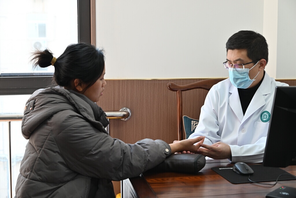 1月20日,陜西省中醫(yī)醫(yī)院的中醫(yī)專家張冠杰在電子城二〇五所社區(qū)衛(wèi)生服務(wù)站中醫(yī)館為一名患者看診。林敬 攝