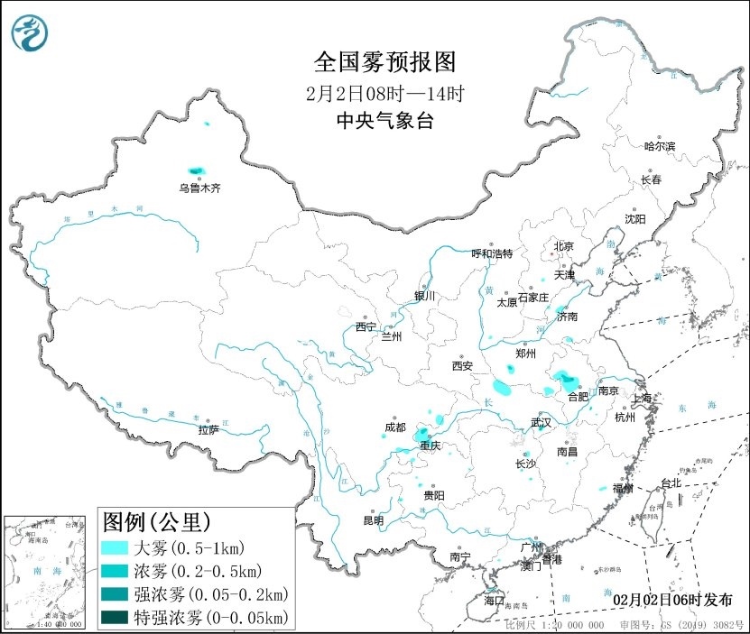 預(yù)計(jì),2月2日早晨至上午,瓊州海峽部分海域、安徽西部、湖北北部、重慶西部等地將有能見度不足1公里的大霧,局地有能見度不足500米的濃霧。