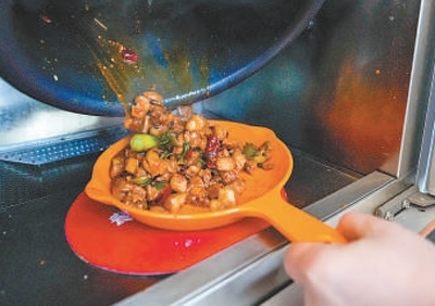 劉楊現(xiàn)場(chǎng)下單了一份干燒雙菇,炒好后,打開柜門的那一刻,香氣撲面而來(lái)?!翱隙ū任易约鹤龅暮贸?,比一些餐廳的味道也好。”劉楊說:“如果家中來(lái)客,炒3個(gè)菜帶回家,總共也就幾十元,比下館子劃算得多?!?/p>