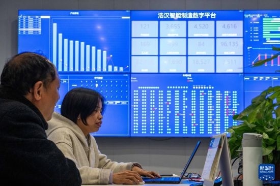 2月24日,在沅江高新區(qū)服裝產(chǎn)業(yè)園一家制衣企業(yè),工作人員通過(guò)智能制造數(shù)字平臺(tái)了解車(chē)間生產(chǎn)情況。