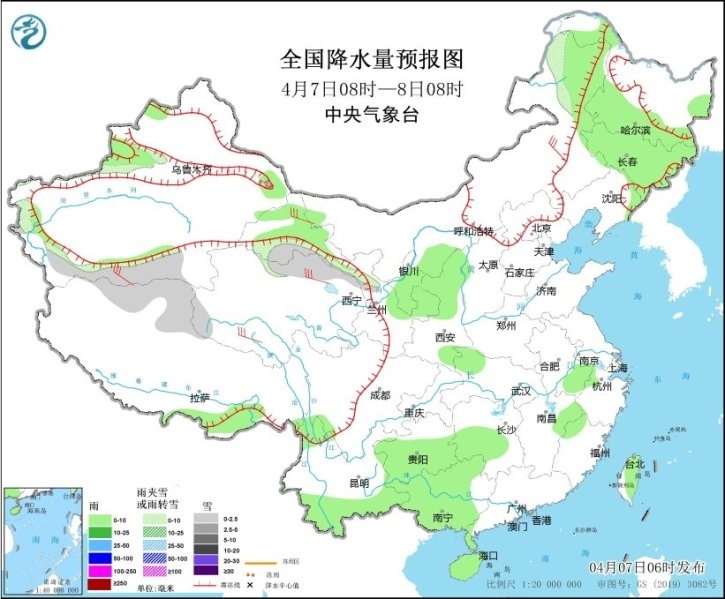 預(yù)計今明兩天,全國大部地區(qū)降水仍較弱,西南地區(qū)東部、江南、華南西部和北部、臺灣島等地部分地區(qū)有小到中雨,局地有大雨;今天(7日)新疆南疆西部、青海北部、內(nèi)蒙古東北部等地部分地區(qū)有小到中雪或雨夾雪。另外,8日夜間至9日,貴州東部、江南、華南北部等地部分地區(qū)有中到大雨,局地有暴雨,并伴有強對流天氣。