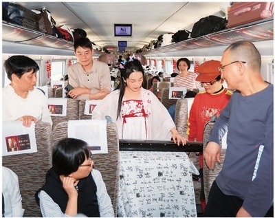 為提升旅游品質(zhì),相關(guān)部門(mén)打造了品質(zhì)型、舒適型、普惠型等不同產(chǎn)品體系的銀發(fā)旅游列車(chē)。在中國(guó)鐵路成都局集團(tuán)打造的精品旅游專列Y472次“熊貓專列·什邡號(hào)”列車(chē)?yán)?,設(shè)有高級(jí)雙人間、高級(jí)四人間、標(biāo)準(zhǔn)四人間及多功能車(chē)和餐車(chē)。旅途中,游客不僅可以在KTV包間唱歌,在棋牌室?jiàn)蕵?lè),還可以在車(chē)廂內(nèi)看電視。“我第一次體驗(yàn)旅游列車(chē),和平時(shí)的火車(chē)完全不一樣。車(chē)上可以唱歌、品茶還有各種娛樂(lè)活動(dòng),感覺(jué)非常驚喜。”游客嚴(yán)女士說(shuō)。