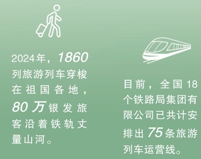 今年2月,商務(wù)部、文化和旅游部、中國(guó)國(guó)家鐵路集團(tuán)有限公司等9單位聯(lián)合發(fā)布《關(guān)于增開(kāi)銀發(fā)旅游列車(chē)促進(jìn)服務(wù)消費(fèi)發(fā)展的行動(dòng)計(jì)劃》,指出要擴(kuò)容旅游列車(chē)線路和產(chǎn)品,豐富銀發(fā)旅游列車(chē)產(chǎn)品供給,建立品質(zhì)型、舒適型、普惠型產(chǎn)品體系。目前,全國(guó)18個(gè)鐵路局集團(tuán)有限公司已共計(jì)安排出75條旅游列車(chē)運(yùn)營(yíng)線。一趟趟銀發(fā)列車(chē)如春日繁花次第綻放,為老年人鋪就通往詩(shī)與遠(yuǎn)方的旅途,更以流動(dòng)的風(fēng)景線激活沿線文旅消費(fèi),為推動(dòng)經(jīng)濟(jì)高質(zhì)量發(fā)展注入“銀發(fā)”新動(dòng)能。