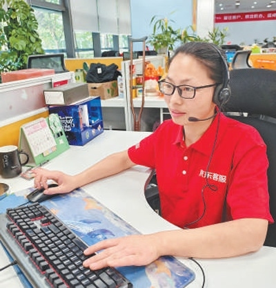 5月15日下午4點(diǎn)半,江蘇宿遷,許春香正面帶微笑與客戶溝通,她頭戴耳麥,眼睛緊盯屏幕,手指在鍵盤(pán)上靈活跳動(dòng)。