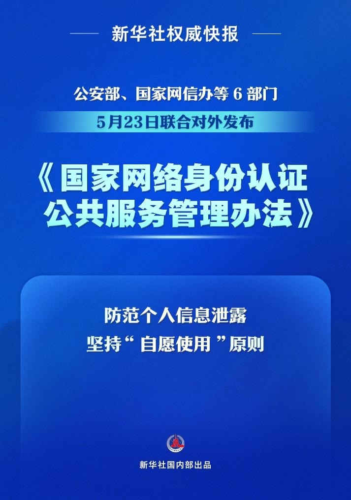 管理辦法將于7月15日起施行。公安部將聯(lián)合有關(guān)部門加大宣傳引導(dǎo)和推廣應(yīng)用力度,切實發(fā)揮國家網(wǎng)絡(luò)身份認證公共服務(wù)的作用,拓展更多應(yīng)用場景。