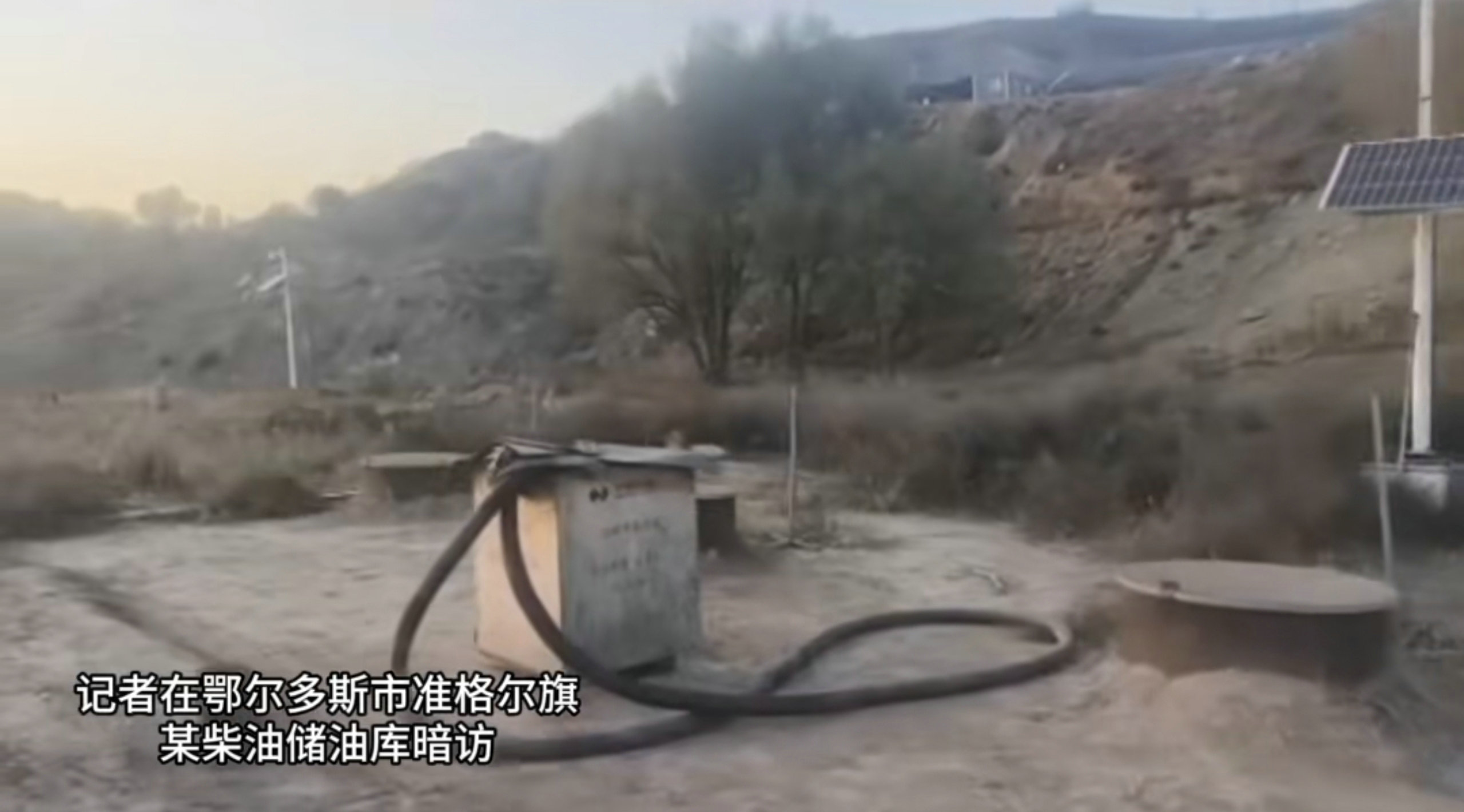 10月28日,內(nèi)蒙古日報(bào)社張弓長新聞工作室記者在鄂爾多斯市準(zhǔn)格爾旗一個(gè)緊鄰礦區(qū)的山溝里暗訪時(shí)發(fā)現(xiàn),有一處規(guī)模較大的地埋罐式柴油儲油庫,存在重大安全隱患。