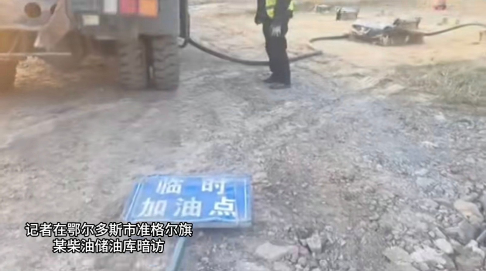 然而,記者在現(xiàn)場暗訪時(shí)注意到,正在抽油的那輛無牌運(yùn)油車上,清晰標(biāo)注著“準(zhǔn)聯(lián)煤礦2號加油車”字樣,在現(xiàn)場作業(yè)的男子也承認(rèn)這里是準(zhǔn)聯(lián)煤礦的儲油庫,這顯然與賀主任的說法完全相悖。