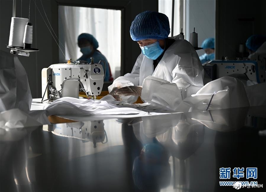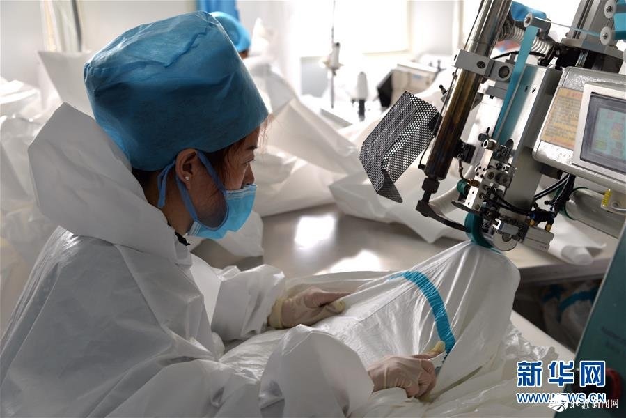 呼和浩特欣龍康醫(yī)療器械有限責任公司是一家員工不足20人的小型企業(yè),也是內(nèi)蒙古為數(shù)不多能生產(chǎn)醫(yī)用防護服的企業(yè)之一。新冠肺炎疫情發(fā)生后,公司從1月24日(除夕)就組織員工復產(chǎn),24小時連續(xù)作業(yè),生產(chǎn)無菌醫(yī)用防護服和隔離服。目前,該企業(yè)每天生產(chǎn)防護服約400套,全部用于內(nèi)蒙古防治新冠肺炎的一線醫(yī)護人員。 新華社記者 徐欽 攝