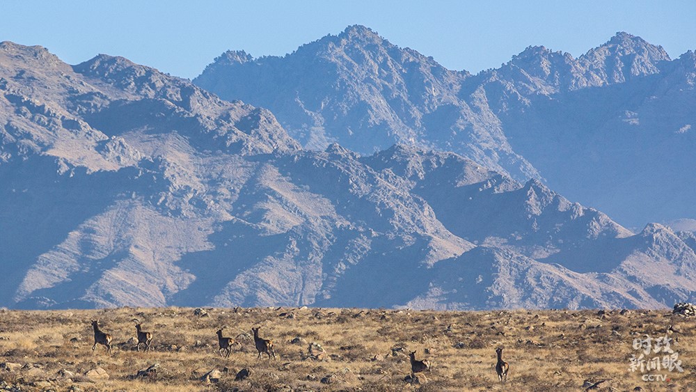 △巖羊是國家二級保護(hù)動物,因攀登本領(lǐng)高超被譽為“峭壁精靈”?!稌r政新聞眼》恰巧捕捉到它們跳躍的身影。(總臺央視記者陶鵬飛拍攝)