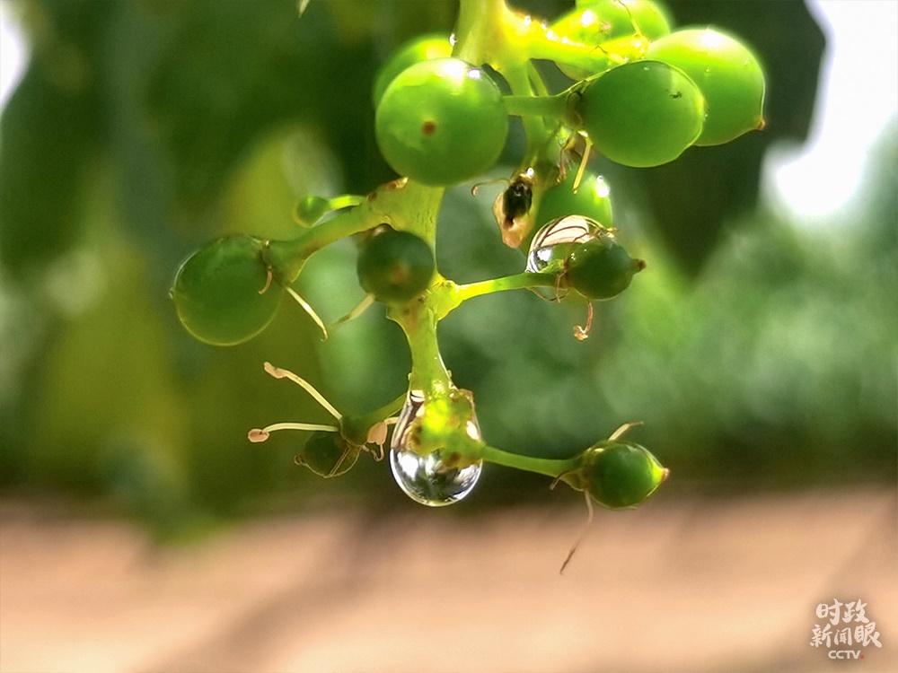 △當(dāng)?shù)氐钠咸堰€未成熟,采摘通常集中在9、10月份。(總臺央視記者楊波拍攝)