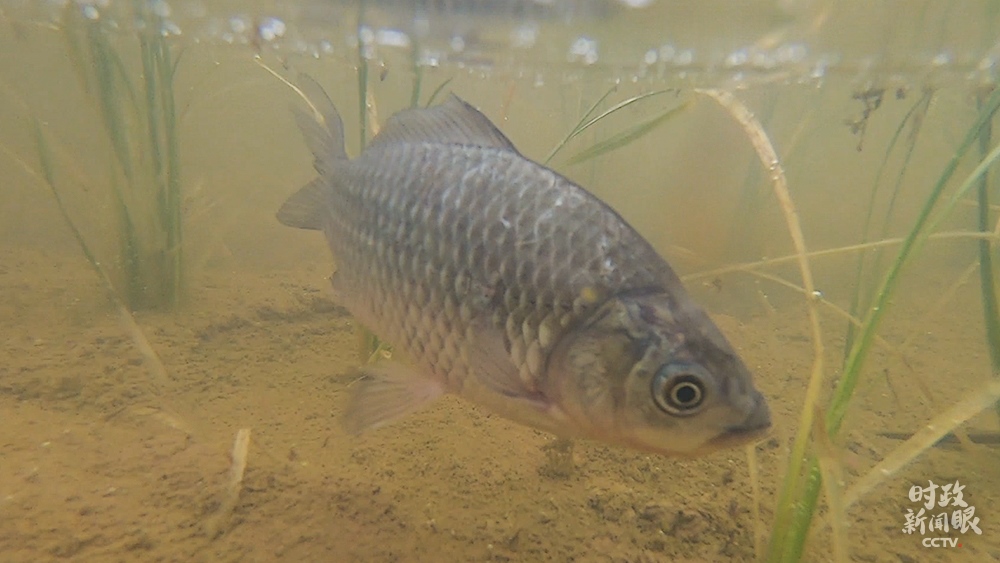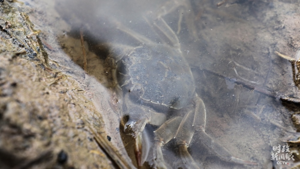 △魚蝦蟹在稻田里游動,既松動泥土幫助水稻生長,又能提供肥料。(總臺央視記者范凱拍攝)