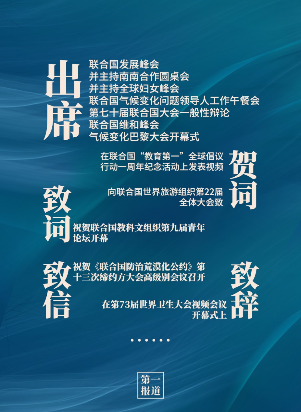2013年以來,習(xí)主席通過出席聯(lián)合國活動、向聯(lián)合國活動致信函等方式,進一步深化中國同聯(lián)合國的合作,為維護世界和平、促進共同繁榮、完善全球治理貢獻中國智慧,注入中國動力。