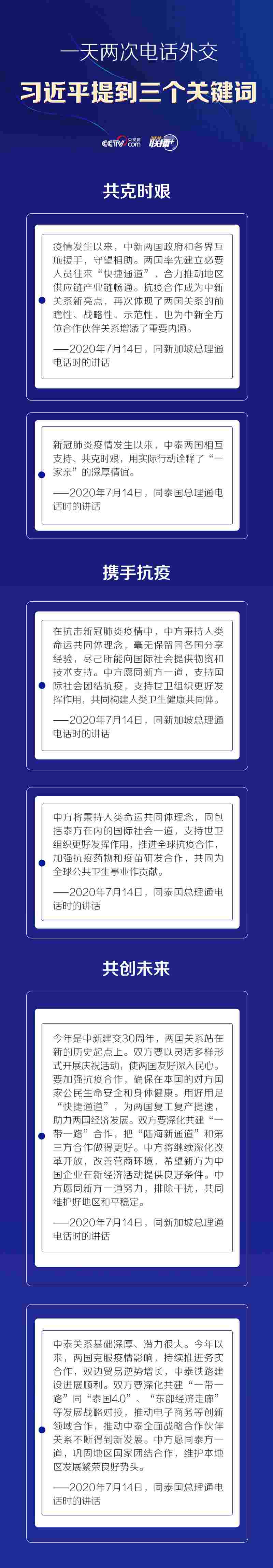 聯(lián)播+當前,新冠肺炎疫情仍在全球蔓延,多國面臨外防輸入、內(nèi)防反彈的壓力。7月14日,習(xí)近平主席分別同新加坡總理李顯龍和泰國總理巴育通電話。