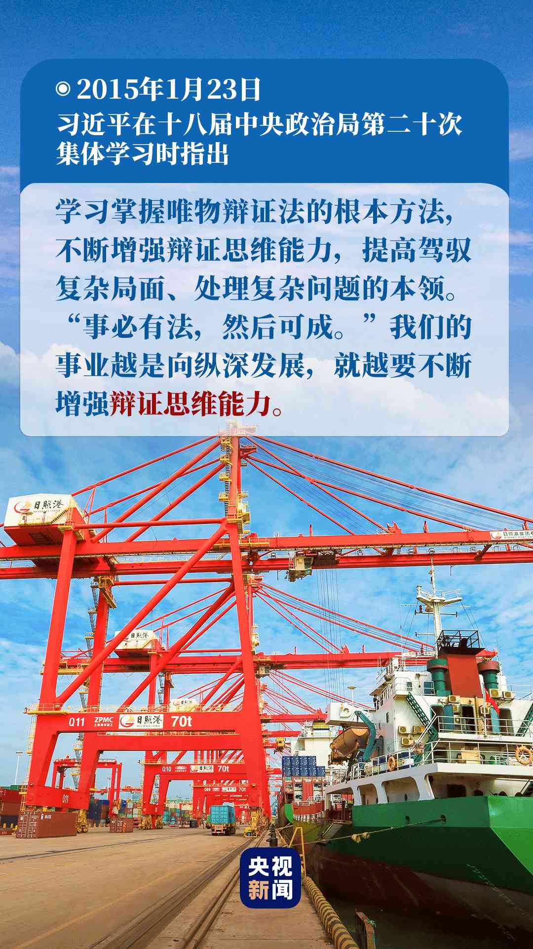 浩渺行無極,揚(yáng)帆但信風(fēng)。落實(shí)習(xí)近平總書記的重要指示,掌握好馬克思主義哲學(xué)這個“看家本領(lǐng)”,掌握唯物辯證法的根本方法,處理好局部和全局、當(dāng)前和長遠(yuǎn)、重點(diǎn)和非重點(diǎn)的關(guān)系,我們就一定能夠作出最為有利的戰(zhàn)略抉擇,牢牢掌握發(fā)展主動權(quán),實(shí)現(xiàn)經(jīng)濟(jì)高質(zhì)量發(fā)展,乘勢而上開啟全面建設(shè)社會主義現(xiàn)代化國家新征程,向第二個百年奮斗目標(biāo)不斷奮進(jìn)。