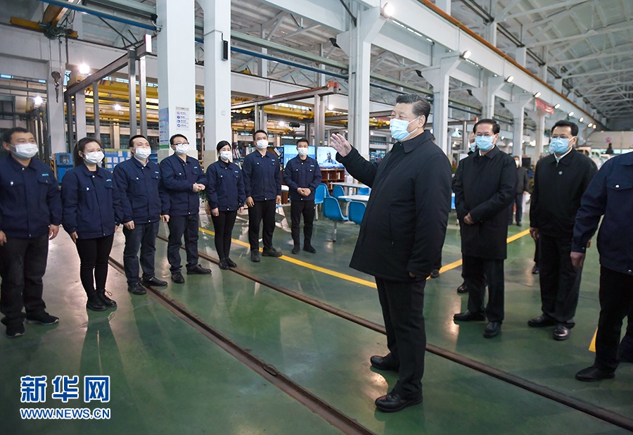 在浙江,習近平來到生產線旁,同工人們親切交談,詢問大家返崗途中是否都順利、復工后生產生活還有哪些困難、工資發(fā)放是否正常。他要求確保市民的“米袋子”“菜籃子”貨足價穩(wěn),確保農民的“錢袋子”富足殷實。