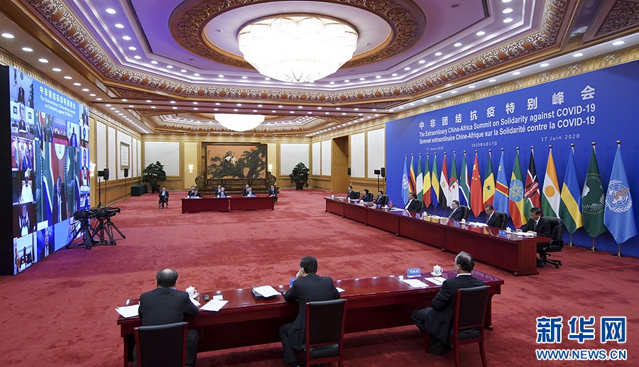 6月17日晚,習近平在北京主持中非團結抗疫特別峰會并發(fā)表題為《團結抗疫 共克時艱》的主旨講話。 新華社記者 丁海濤 攝