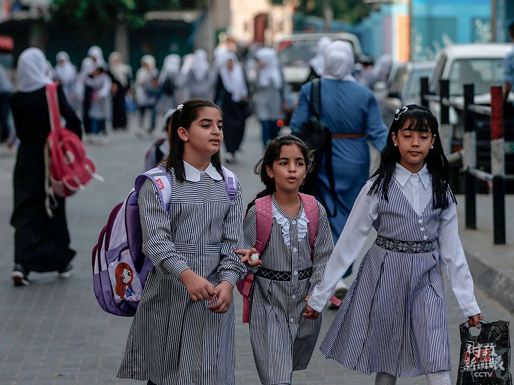 △巴勒斯坦加沙地帶近日開學,學生們到聯(lián)合國救濟和工程處開辦的學校上課。