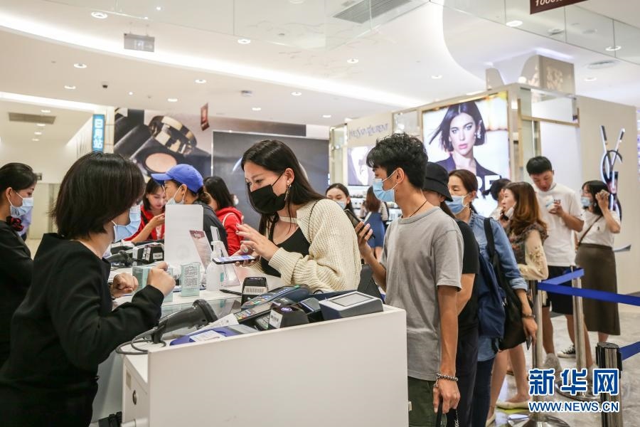 10月27日,消費(fèi)者在海南省??谑腥赵聫V場(chǎng)免稅店選購(gòu)商品。新華社記者 張麗蕓 攝