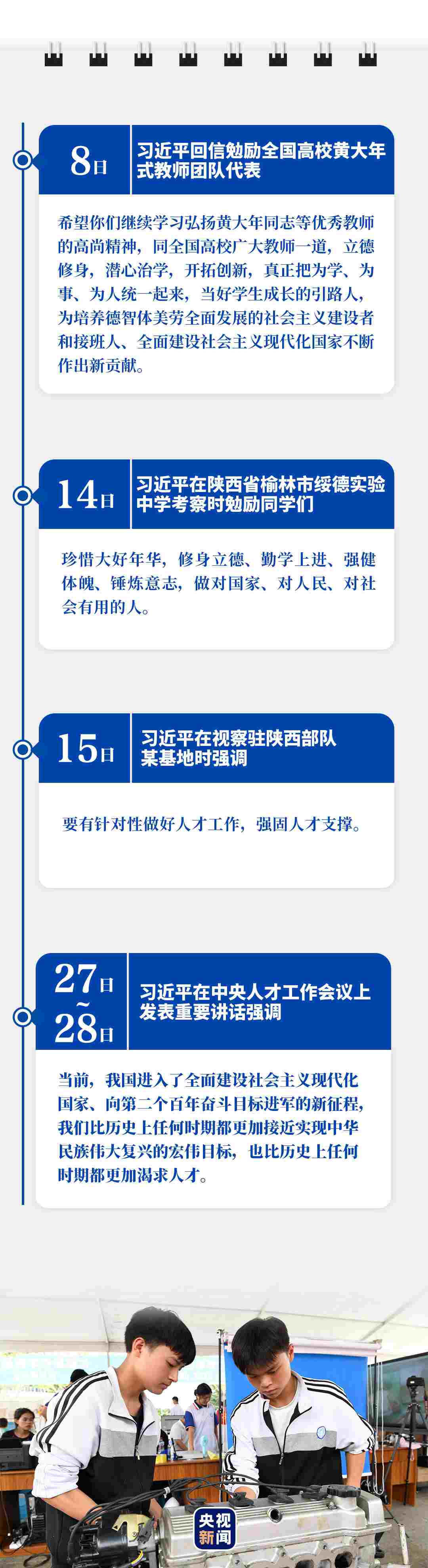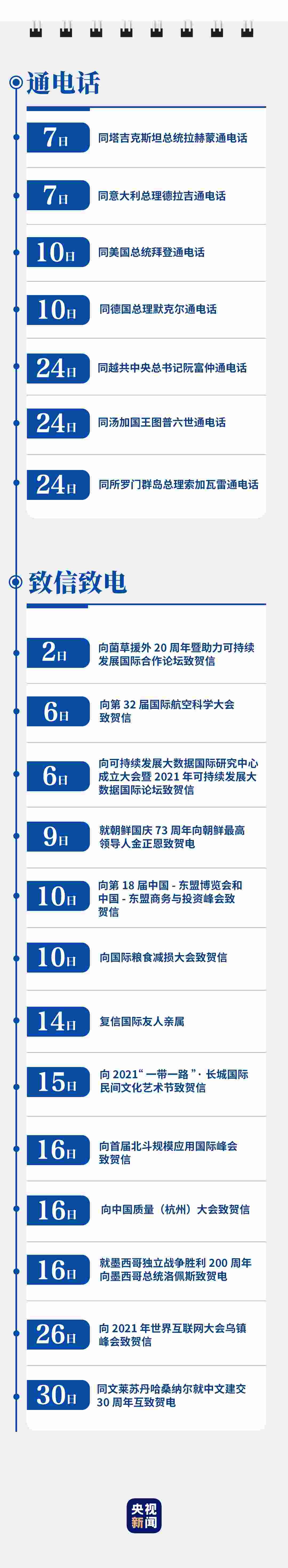 剛剛過去的9月,給人民英雄敬獻(xiàn)花籃,緬懷英烈、表達(dá)哀思;赴革命舊址考察,強(qiáng)調(diào)堅(jiān)守信仰、堅(jiān)定信念;出席重要會(huì)議,擘畫為黨育人、為國育才;開展多次“云外交”活動(dòng),主張講信修睦、合作共贏……習(xí)近平行程滿滿,話語鏗鏘。