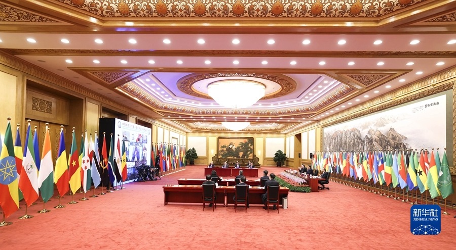 11月29日晚,國家主席習(xí)近平在北京以視頻方式出席中非合作論壇第八屆部長(zhǎng)級(jí)會(huì)議開幕式并發(fā)表題為《同舟共濟(jì),繼往開來,攜手構(gòu)建新時(shí)代中非命運(yùn)共同體》的主旨演講。新華社記者劉彬攝