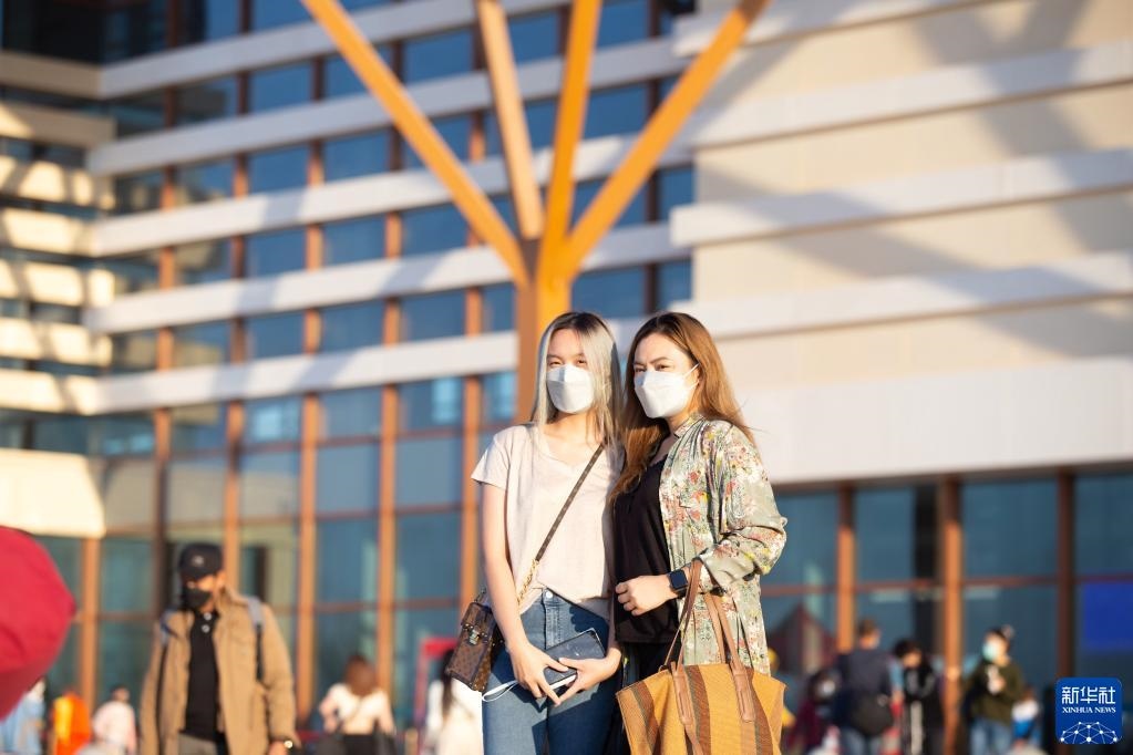 2021年12月12日,旅客在中老鐵路萬(wàn)象站廣場(chǎng)拍照。新華社記者 章建華 攝