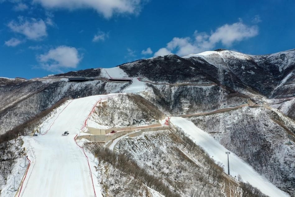 歷時1277天建設(shè),國家高山滑雪中心順利完工。7條雪道猶如白色瀑布由山頂向山谷蜿蜒“流淌”,最長賽道全長約3千米,垂直落差大約900米。這是國內(nèi)最高等級的高山滑雪賽道、國內(nèi)唯一符合冬奧會標準的賽道,也是世界上難度最大的高山滑雪賽道之一。