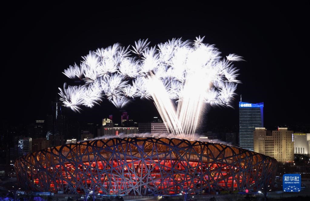 北京2022年冬奧會(huì)開幕式上的焰火表演(2月4日攝)。新華社記者 盧燁 攝