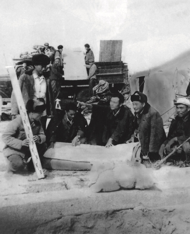 20世紀60年代,焦裕祿(前中)在蘭考沙區(qū)現(xiàn)場組織抗災。(新華社發(fā))