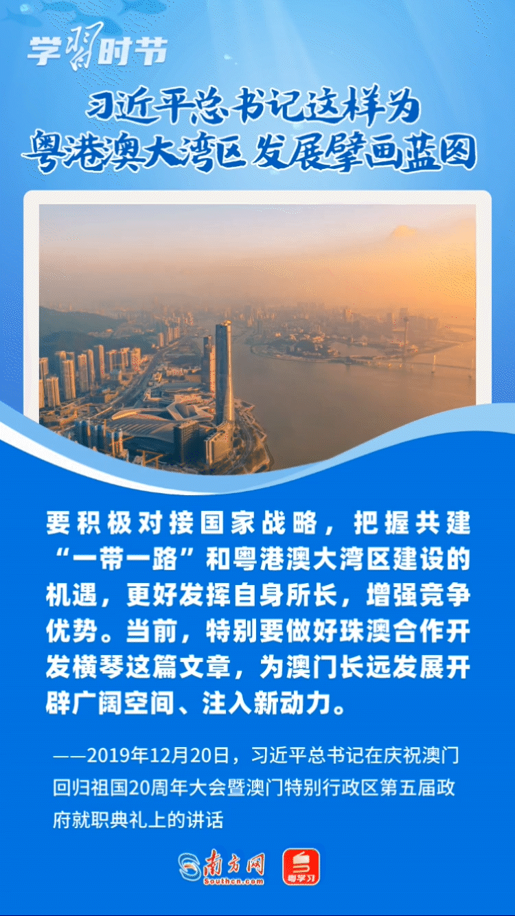 在《粵港澳大灣區(qū)發(fā)展規(guī)劃綱要》公布四周年之際,讓我們共同學(xué)習(xí)回顧總書記關(guān)于粵港澳大灣區(qū)建設(shè)的重要論述,體悟總書記為這個(gè)重大國(guó)家戰(zhàn)略擘畫藍(lán)圖的遠(yuǎn)見(jiàn)卓識(shí)與雄韜偉略。