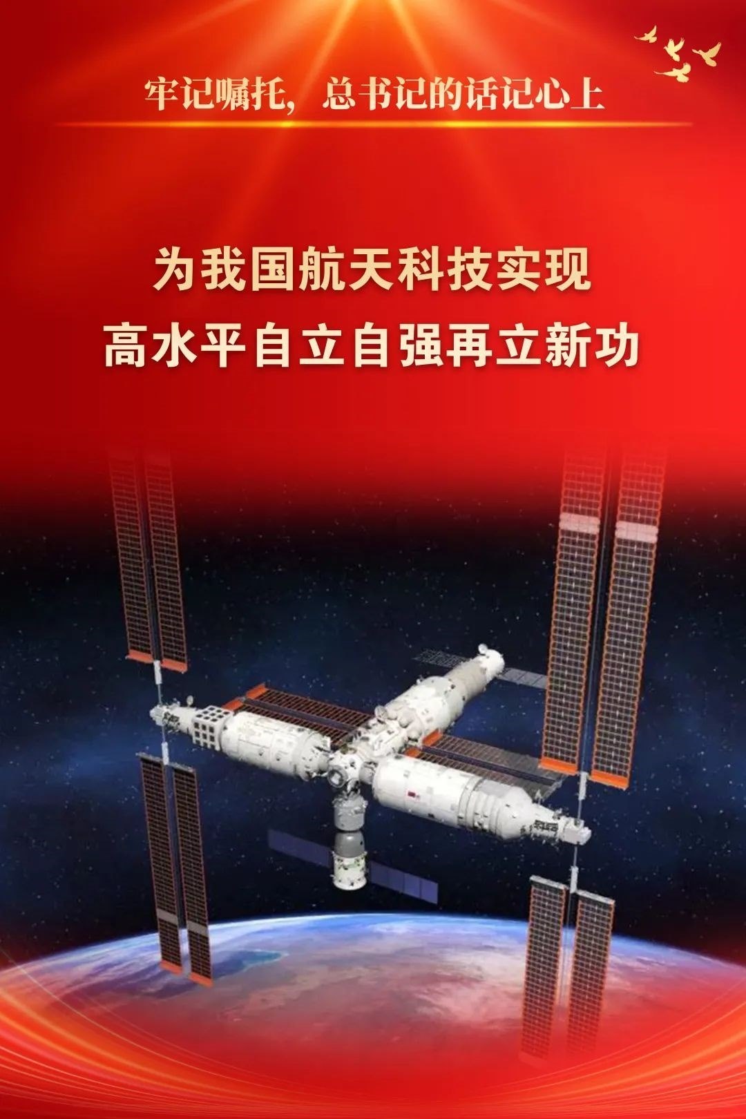 新時(shí)代是奮斗者的時(shí)代。進(jìn)入新時(shí)代,在以習(xí)近平同志為核心的黨中央堅(jiān)強(qiáng)領(lǐng)導(dǎo)下,在習(xí)近平新時(shí)代中國(guó)特色社會(huì)主義思想指引下,中國(guó)航天牢記殷切囑托、錨定強(qiáng)國(guó)目標(biāo),自信自強(qiáng)、守正創(chuàng)新,取得了以載人航天、探月探火、衛(wèi)星導(dǎo)航為標(biāo)志的重大成果,不斷創(chuàng)造新的歷史,為推動(dòng)我國(guó)進(jìn)入創(chuàng)新型國(guó)家行列、加快實(shí)現(xiàn)高水平科技自立自強(qiáng)貢獻(xiàn)了航天智慧、航天方案、航天力量。