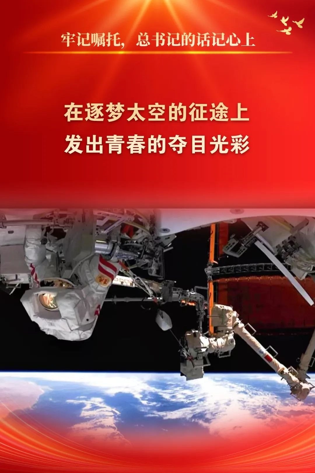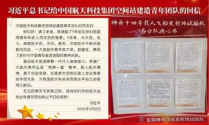 2022年5月2日,習(xí)近平總書記給中國(guó)航天科技集團(tuán)空間站建造青年團(tuán)隊(duì)回信,高度肯定航天青年,殷切期待青春奮斗。他強(qiáng)調(diào):“希望廣大航天青年弘揚(yáng)‘兩彈一星’精神、載人航天精神,勇于創(chuàng)新突破,在逐夢(mèng)太空的征途上發(fā)出青春的奪目光彩,為我國(guó)航天科技實(shí)現(xiàn)高水平自立自強(qiáng)再立新功?!币荒陙?lái),五院人持續(xù)學(xué)習(xí)重溫、堅(jiān)決貫徹落實(shí)習(xí)近平總書記重要回信精神和關(guān)于航天強(qiáng)國(guó)建設(shè)的重要指示批示精神,始終做到牢記囑托、感恩奮進(jìn),交出非凡“答卷”。
