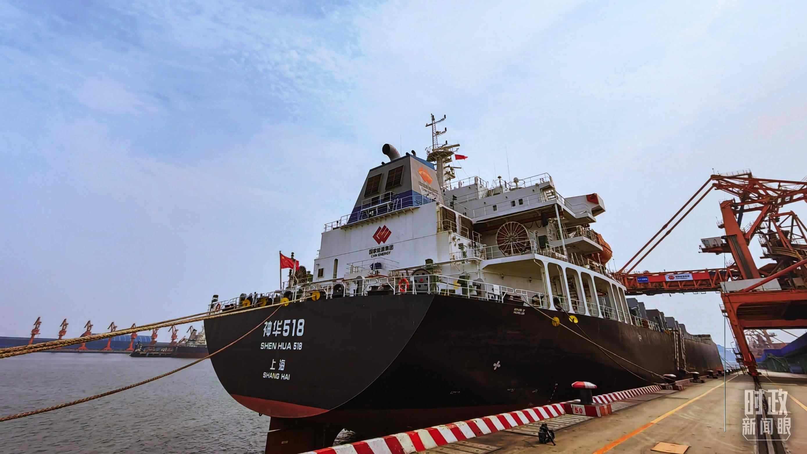 △停靠在黃驊港的神華518輪。(總臺央視記者張曉鵬拍攝)