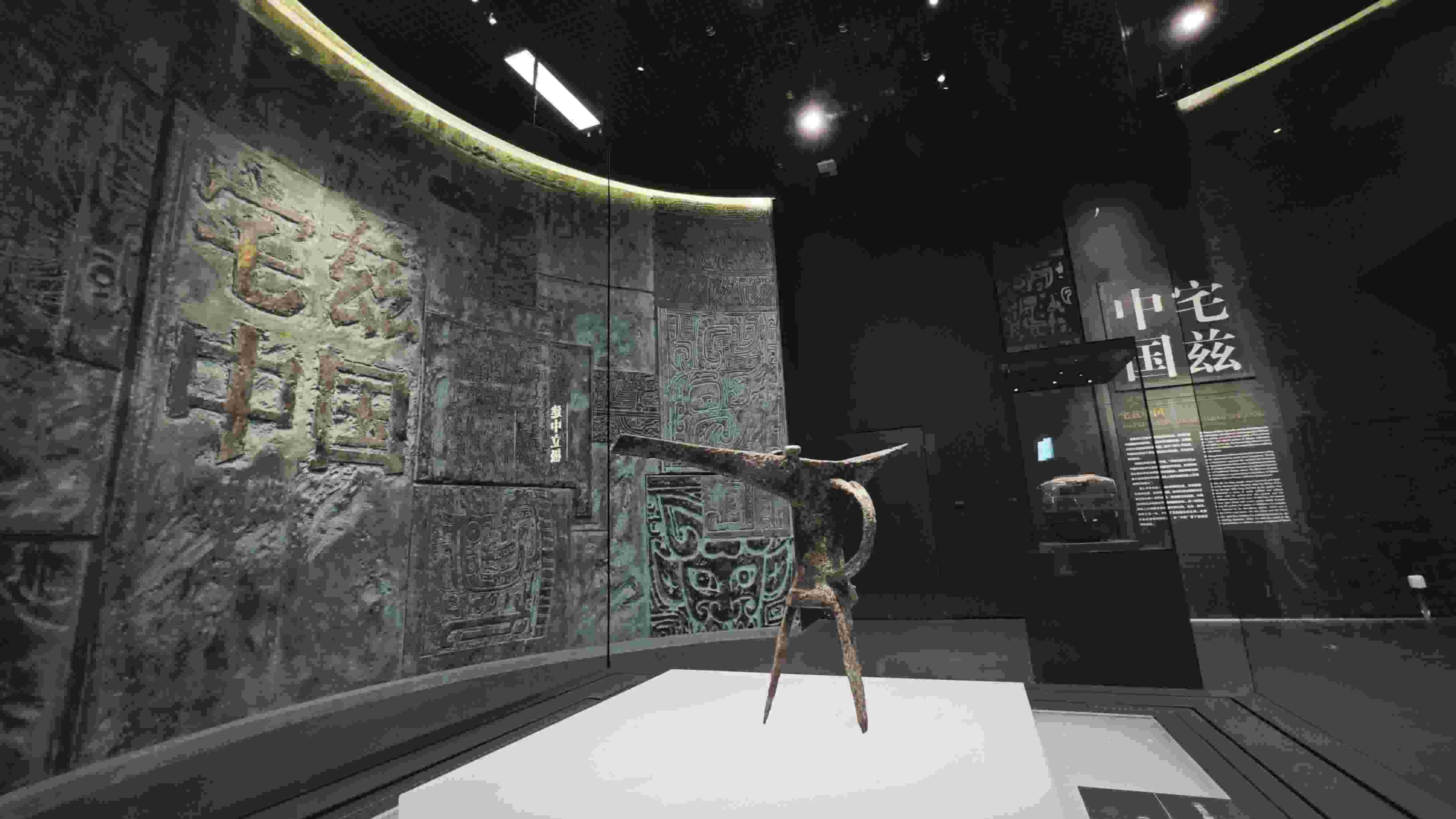 展廳內(nèi),一件造型渾厚、工藝精美的西周早期青銅器——“何尊”熠熠生輝。何尊1963年出土于陜西寶雞,內(nèi)底刻有銘文“宅茲中國”,是目前發(fā)現(xiàn)“中國”二字最早的實(shí)物記錄。2020年,習(xí)近平總書記在陜西考察時(shí)說,“中國”二字最早見于在陜西出土的青銅器何尊。