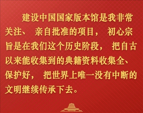 習近平強調,建設中國國家版本館,是文明大國建設的基礎工程,是功在當代、利在千秋的標志性文化工程。