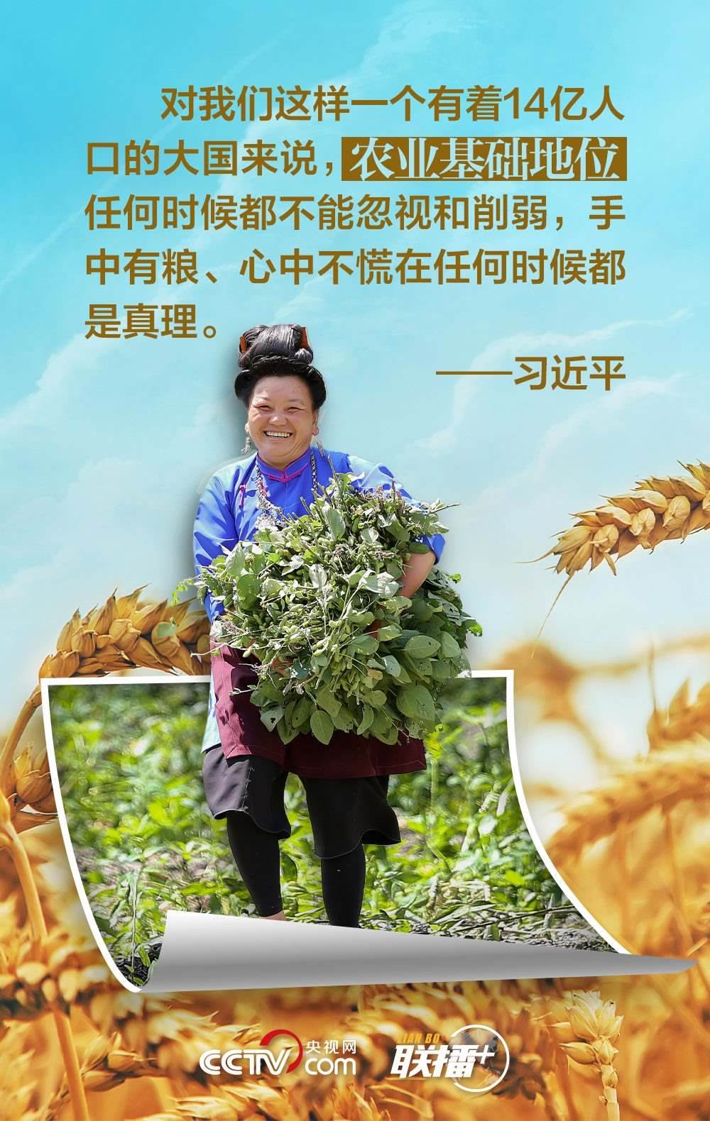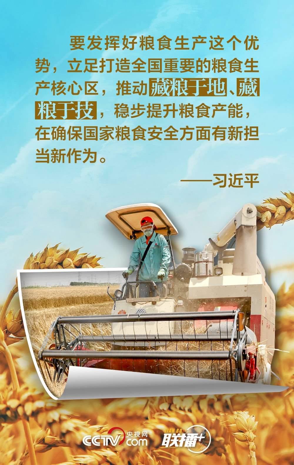 夏糧是全年糧食生產(chǎn)的第一季,約占我國全年糧食產(chǎn)量的五分之一,主要包括夏收的谷物、豆類和薯類等?!笆种杏屑Z,心中不慌。”習近平總書記十分重視糧食安全,他強調(diào),中國人的飯碗任何時候都要牢牢端在自己手中,飯碗主要裝中國糧。值此夏收時節(jié),央視網(wǎng)《聯(lián)播+》與您一起學(xué)習領(lǐng)悟總書記的糧食觀。