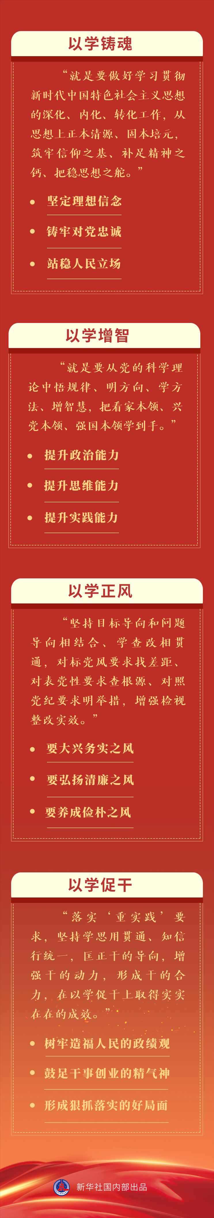 以學(xué)鑄魂推動精神洗禮,以學(xué)增智強化能力提升,以學(xué)正風(fēng)促進作風(fēng)轉(zhuǎn)變,以學(xué)促干推動事業(yè)發(fā)展。