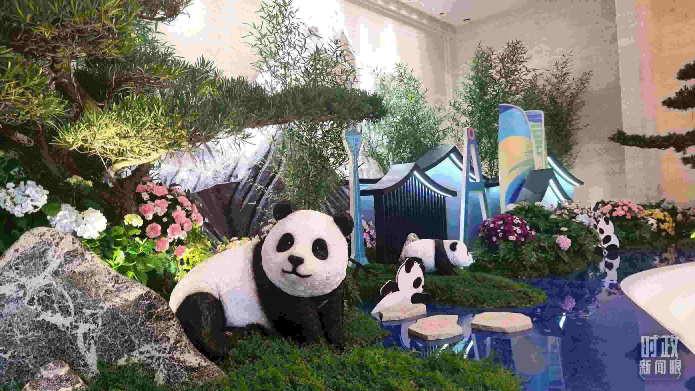 △為國際貴賓展示的四川非物質(zhì)文化遺產(chǎn)棕編和蜀繡。(總臺央視記者蔣碩、韓銳拍攝)