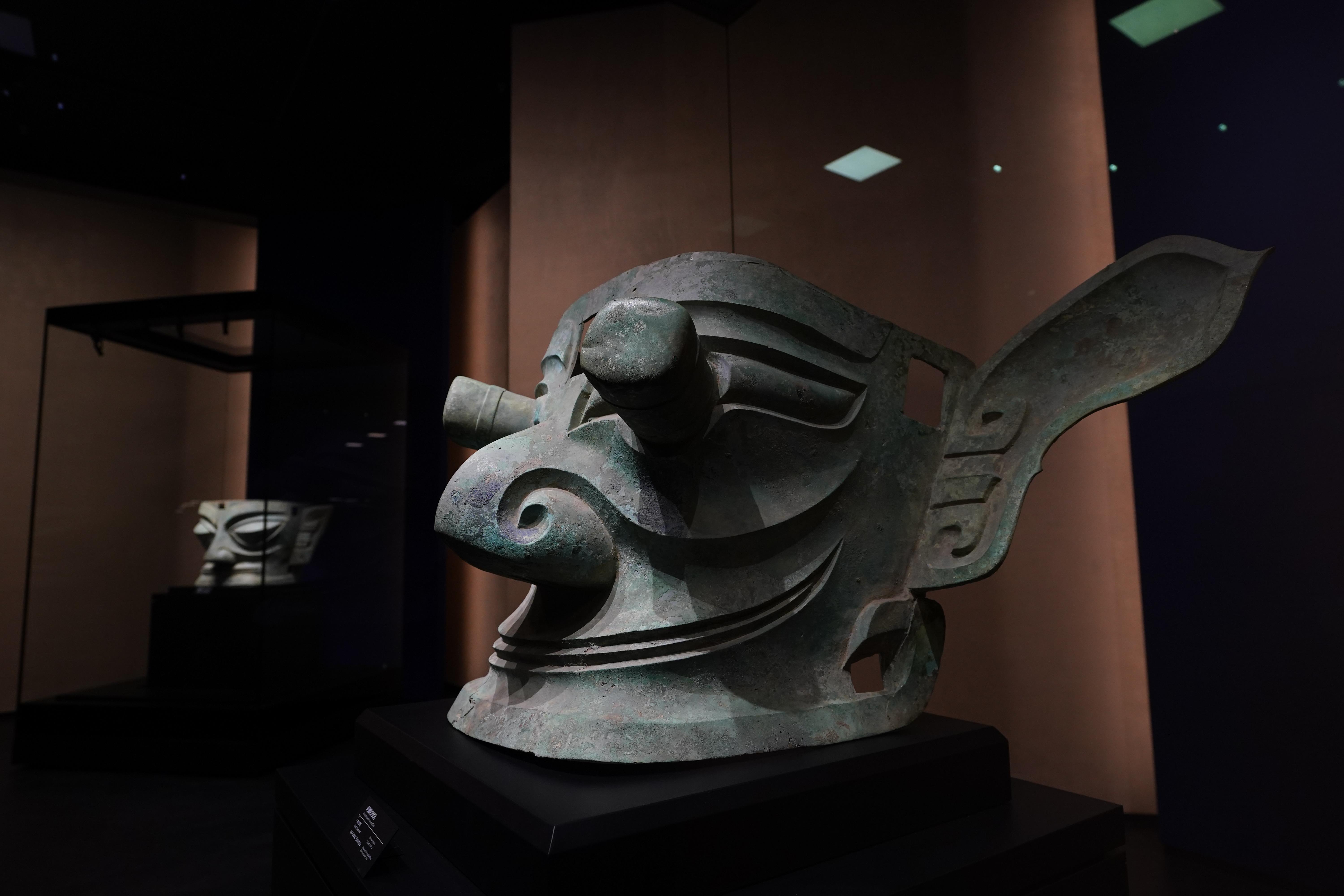△三星堆青銅縱目面具。(總臺(tái)國(guó)廣記者李晉拍攝)